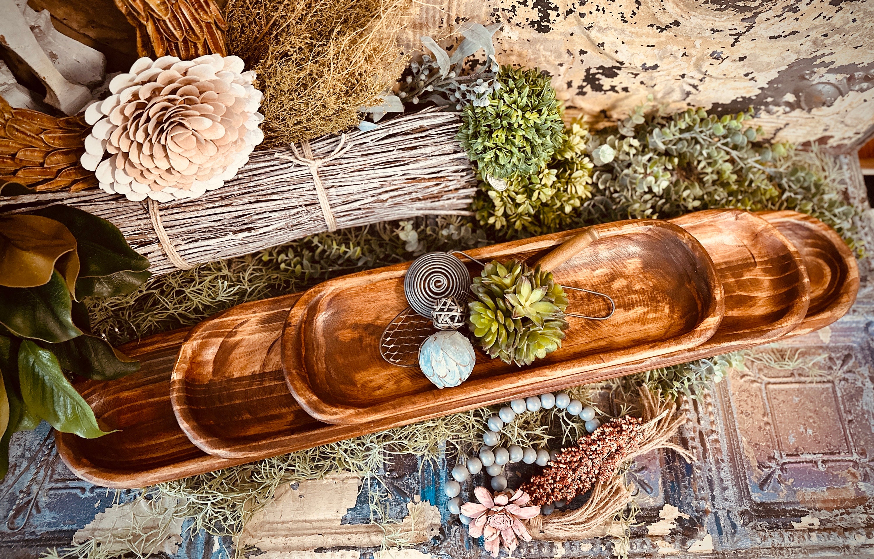 A beautifully made dough bowl. Will look beautiful on my coffee table