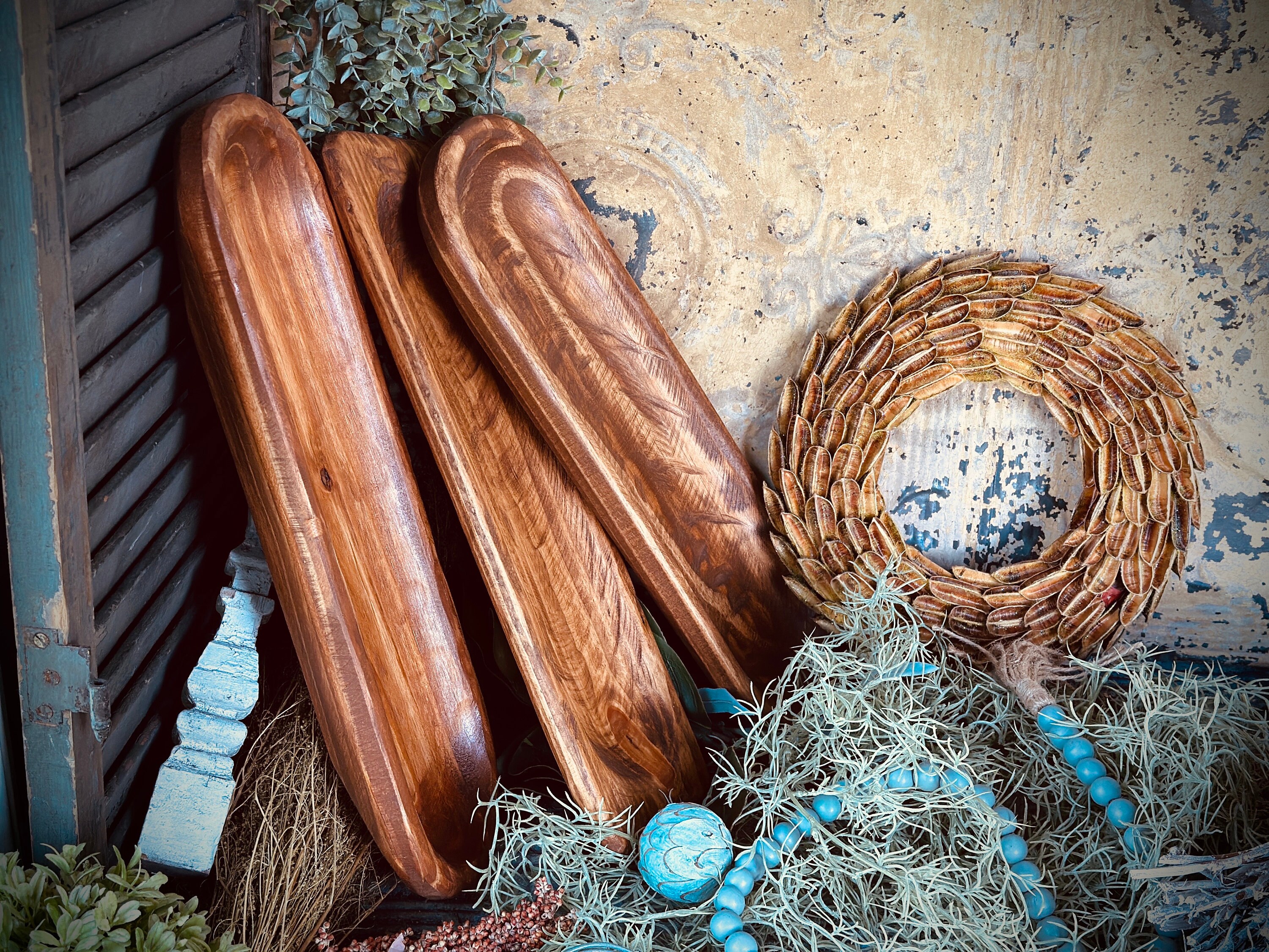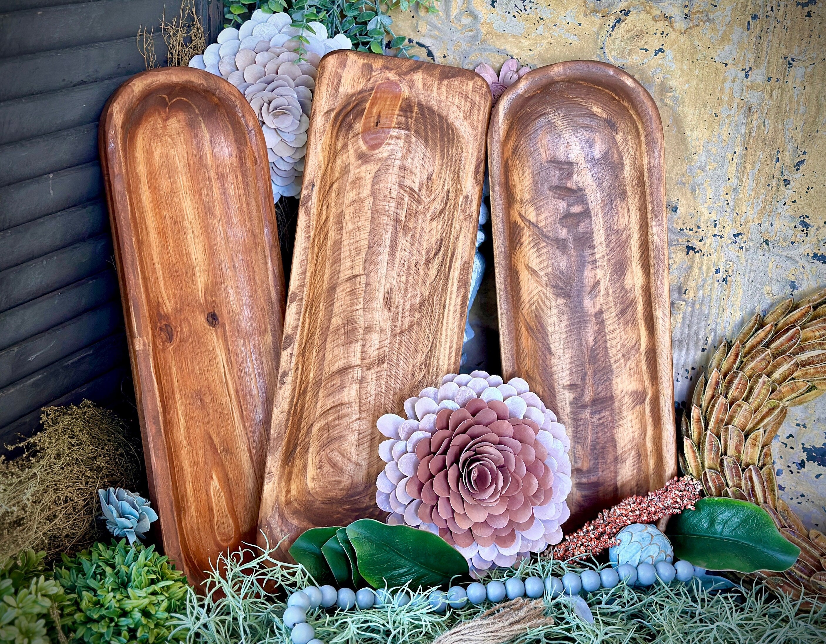 1 of 3 Different Styles | Carved Baguette Bowl | Food Safe | Rustic Wood Bowls | Dough Bowl | Wooden Bowls | Farmhouse | Bohemian